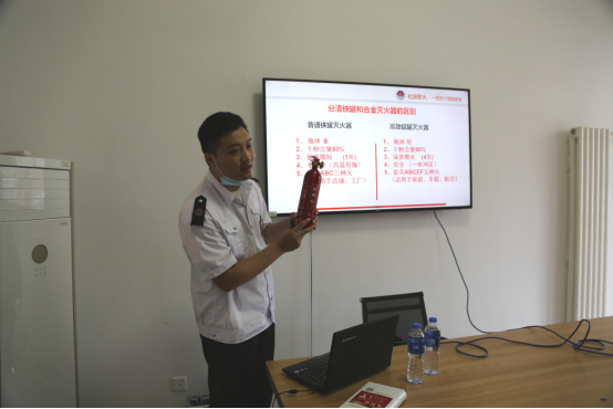 杨教官演示灭火器使用方法