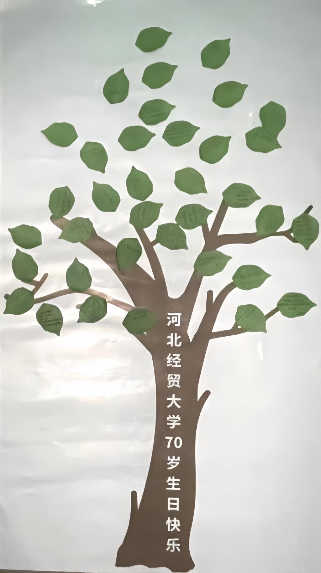 摄影是光与影的诗,会计2班开展了班级摄影活动,同学们按下快门,用镜头记录下校园里一个个美好瞬间,并将其拼凑出“70”的字样,象征着会计二班的同学对母校70周年的满满爱意。另外,同学们在叶子形状的便签纸上写下对母校祝福的话,将其粘贴在印有树干的纸板上,表达着对母校的无尽感激与祝福。
