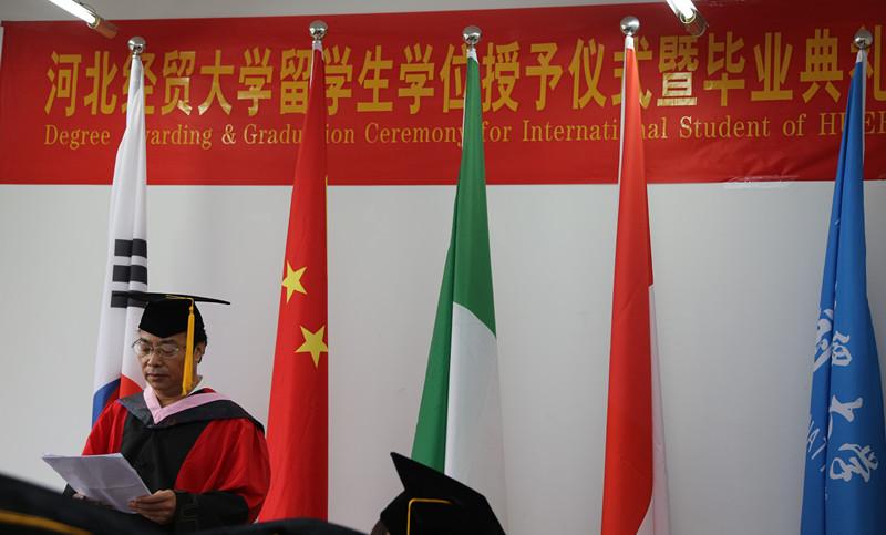 院长成健教授、留学生培养单位商学院院长王小平教授、人文学院院长张金桐教授和留学生导师及部分留学生出席了典礼,典礼由樊国平老师主持。