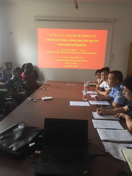 9月26日,成人小说 邀请五七路派出所外事警官高春萌做来华留学生出境入境法律法规专题讲座。讲座由学院办公室主任张伟主持,学院工作人员和全体自费来华留学生聆听。