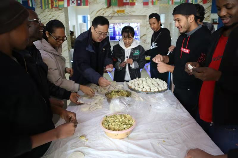 “欢乐一家亲”的浓厚院风。樊国平为留学生示范、并指导大家如何擀皮,包饺子,希望大家通过参与节庆活动增加对中国的了解。现场欢声笑语,气氛热烈。