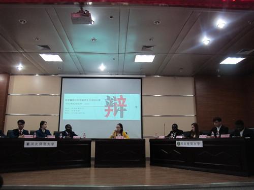 留学生参加2016京津冀外国留学生汉语辩论赛河北赛区选拔赛。此次比赛是由河北省教育厅主办、河北大学承办的,以促进中华优秀文化传播和展示河北省来华留学教育成果的一项重要赛事。
