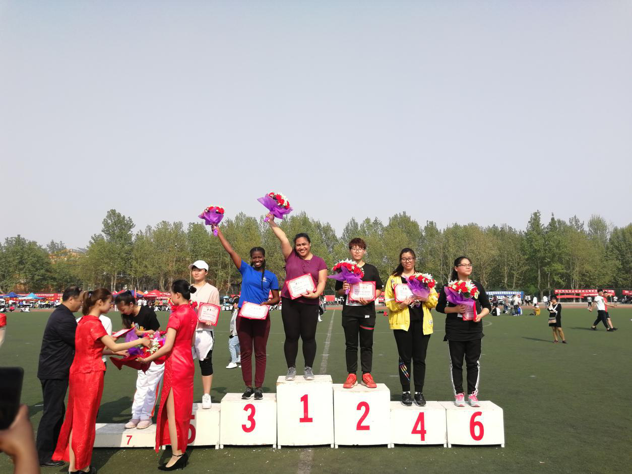 萨摩亚籍留学生李菲菲再次荣登榜首,获得女子铅球比赛第一名,马拉维籍留学生苏雨获得第三名。