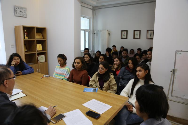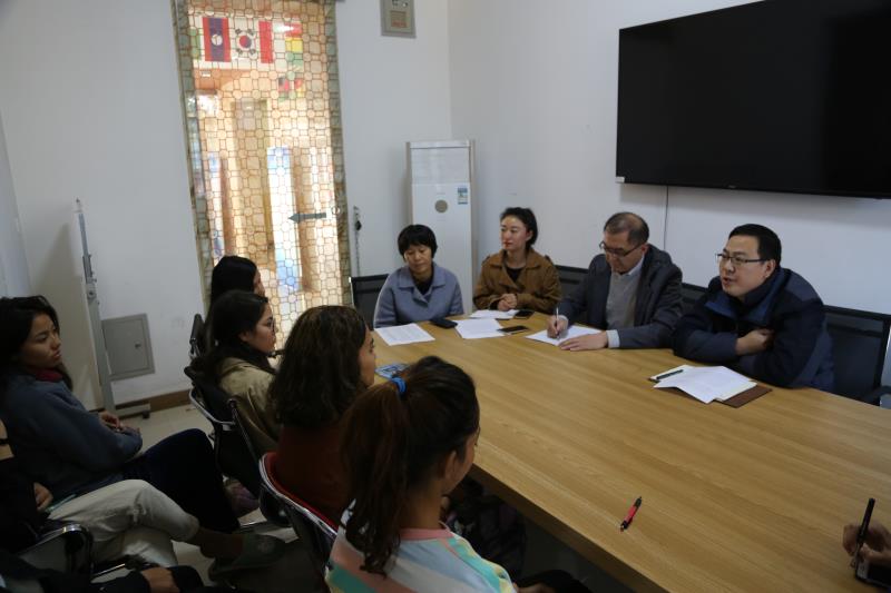 党总支书记耿辉建、留学生管理副院长樊国平、留学生班主任和2019级汉语师范专业留学生参加。