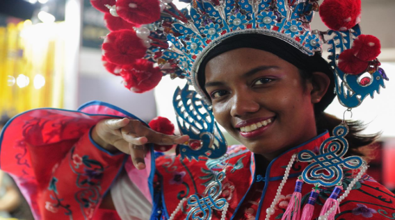 留学生黄雪儿、奥卡首先出场,为来自全国各地的茶商及中外参观者表演了传统戏曲,展现了成人小说