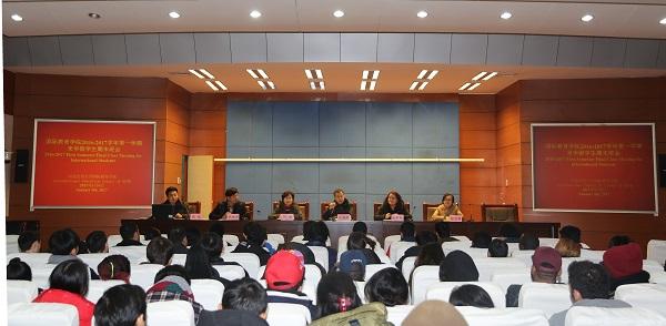 在会议中心视频会议室召开了2016-2017学年第一学期留学生期末班会。院长王成云教授、副院长张希颖教授、副院长何懿教授、留学生管理工作人员和全体留学生参加会议。院办主任张伟主持会议。