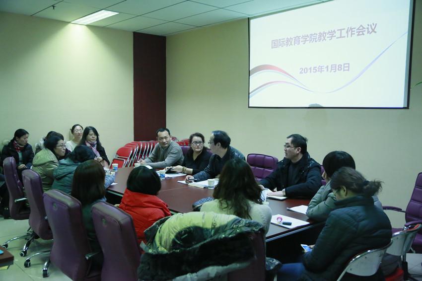 国际教育教学运行费用分配管理办法》以及来华留学生考务制度进行了解读。随后与会教师纷纷对本年度的教学工作与学院相关领导进行了意见沟通。