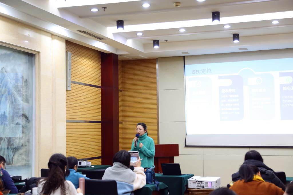 ISEC项目及全新的教学、管理理念,讲解了学校对参与ISEC项目教师发展的支持政策和机制保障,希望为广大教师提供更好的发展平台。随后学院副院长刘晔、马克思主义学院副院长李英分别介绍了ISEC项目概况和明辨性思维在教学中的运用。特聘专家、ISEC项目培训师渤海大学教务处副处长张征超、吉林师范大学教授肖冰对ISEC教师发展与过程性评价以及教学大纲进行讲解并以实际教学范例进行展示。